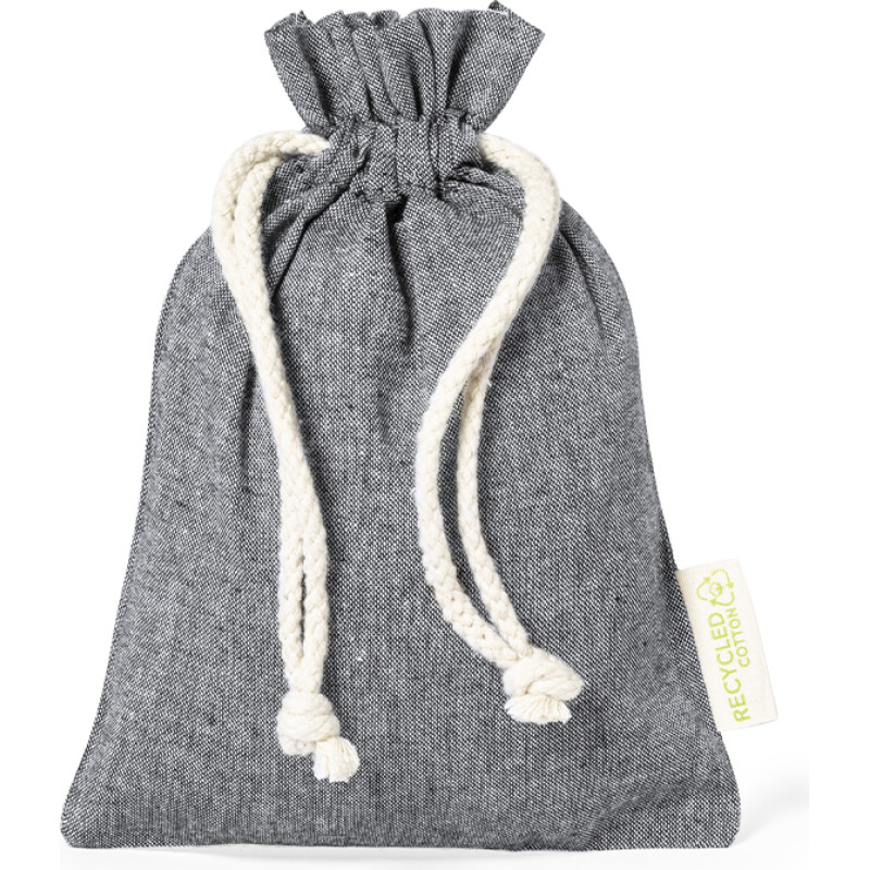 Eco-friendly bag made in resistant recycled cotton material of 120g/m2. GRS (Global Recycled Standard) certification, guaranteeing the recycled origin of the material used to manufacture the product. Cotton drawstring closure and stitched finish, including outside label with recycled cotton logo.