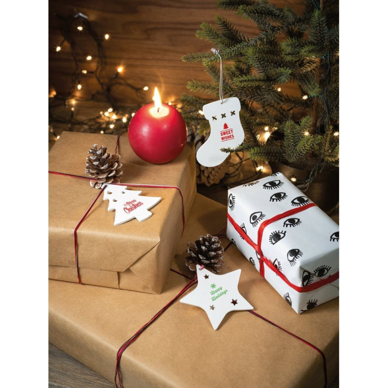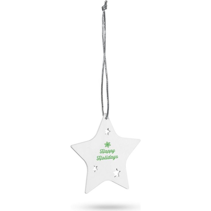Star-shaped wooden Christmas decoration. As the product is made from natural materials, the colour and the printing result may vary between products. 75x78x2.5 mm