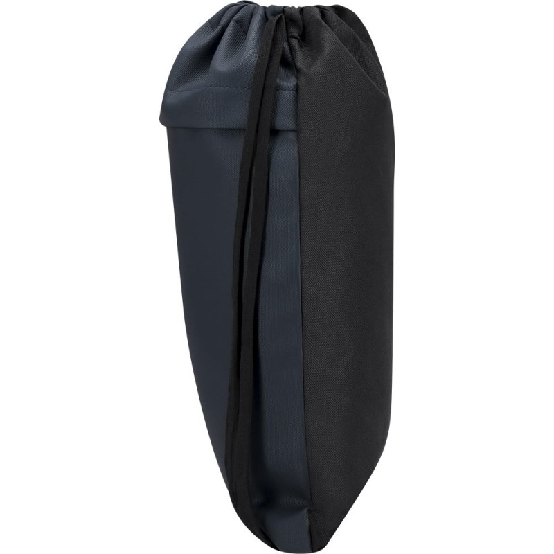 Drawstring backpack made of soft PU combined with durable 600D polyester. Features a functional front pocket with zipper closure and matching PU puller.