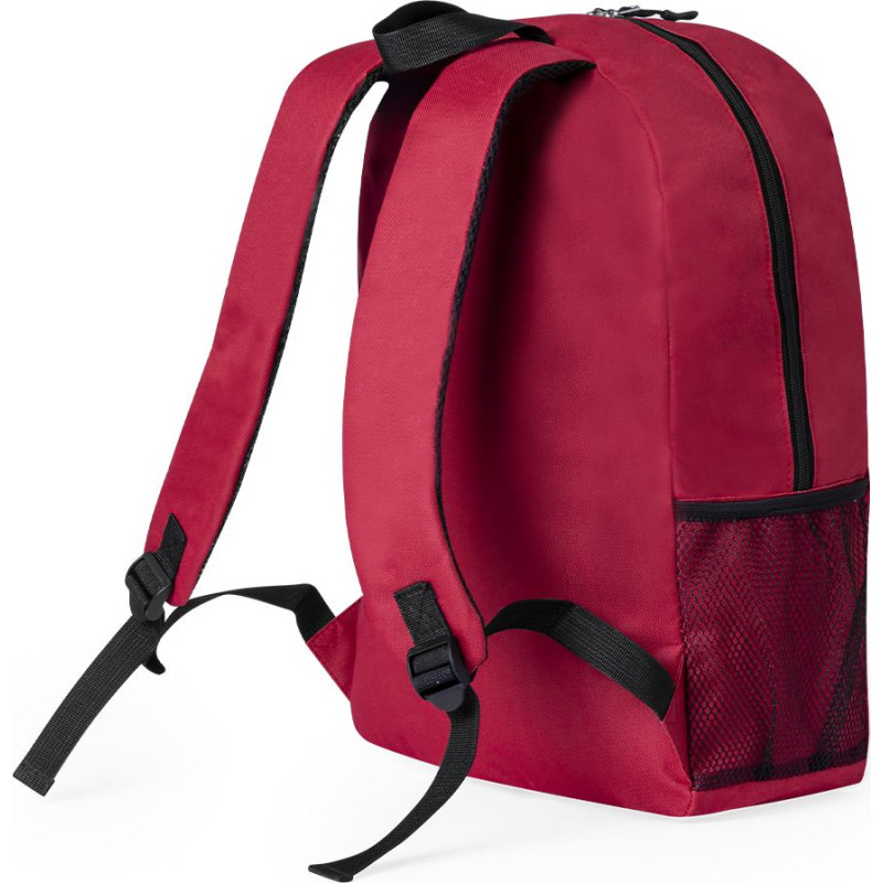 Backpack made of durable 600D RPET. It has a main pocket with zip closure and double puller. The shoulder straps are padded and adjustable. With mesh pockets on the sides, as well as adjustable elastic cord at the front. Available in a selection of colours with black accessories, presented individually in a Recycled bag. RPET badge on the outside label.RPET material is made from recycled plastic to encourage the reuse of plastic waste and help the sustainability of the planet.