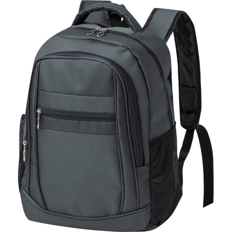 Backpack made of durable 600D Nylon. Features one main pocket with zippered closure and double puller. Inside with padded pockets for tablets up to 10 inches and laptops up to 15 inches. Two additional front pockets. Both back and shoulder straps are padded and adjustable, made of breathable fabric. It features a comfortable padded top strap and side mesh pockets. Available in stylish colours, with black accessories. Presented in an individual bag.