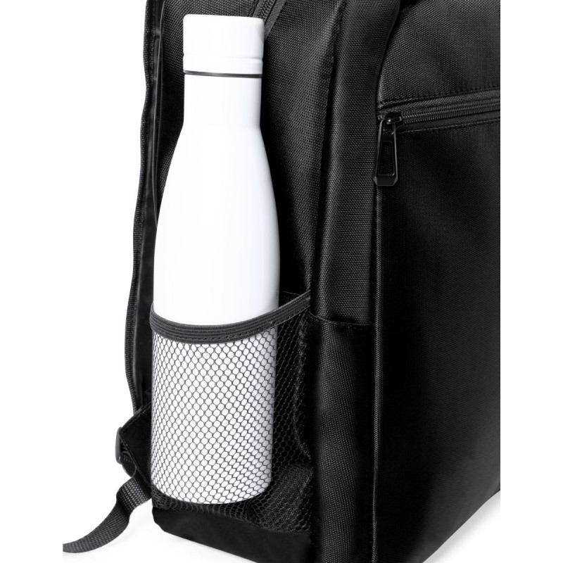 High quality backpack made of 420D RNYLON. Main compartment with matching zip closure and double puller. Including outside zipped pocket and 2 side mesh pockets. Padded handle, back, and shoulder straps, the latter adjustable. Inside with padded laptop compartment for laptops up to 15 inches and backside attachment for trolley fitting. Available in a wide range of colours, with the recycled distinctive on the outside label.RNYLON material is made from recycled plastic, to encourage the reuse of plastic waste and help the sustainability of the planet.