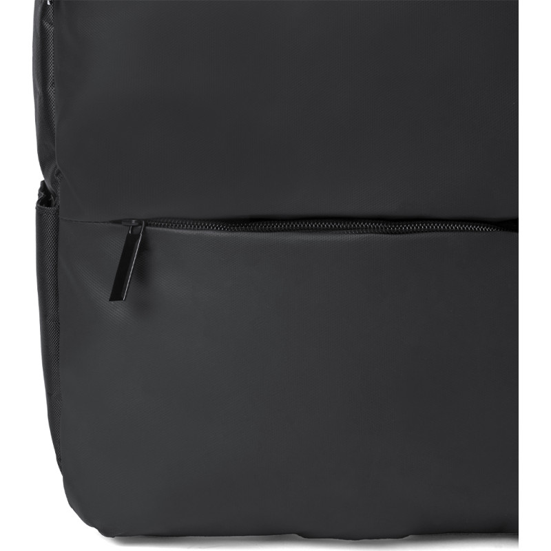 Backpack made of elegant PU leather. An urban design that includes a padded central pocket with double zip for tablets up to 10 inches and laptops up to 15 inches, as well as a secondary pocket. In addition, there is a zipped front pocket with a protective flap. The back and shoulder straps are padded, adjustable, and featuring a breathable fabric. It has a trolley fitting and a comfortable top handle. Presented in an individual Recycled bag.