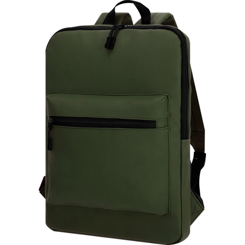 Backpack made from soft PU. With main pocket with zipper closure and double pull. Padded interior for laptops up to 15 inches. Includes front pocket with zipper closure. Padded back and straps, with breathable fabric and adjustable. Includes a transport strap for adjustment on a trolley or suitcase, ideal for travel.