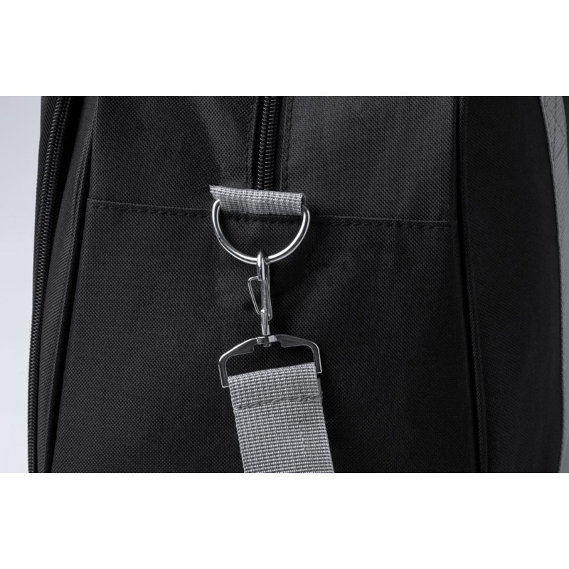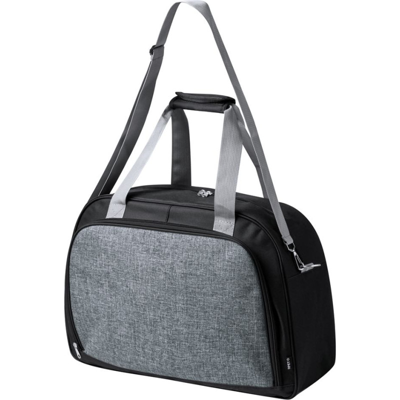 Large capacity bag made of durable 600D RPET. Including 2 resistant handles with a velcro closure pad for comfort. Front pocket with zippered closure and an adjustable shoulder strap. Available in a variety of colours, including a RPET label. Presented in an individual recycled bag.RPET material is made from recycled plastic, thus promoting the reuse of plastic waste and helping the sustainability of the planet.