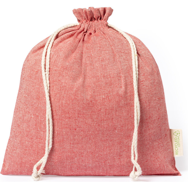 Eco-friendly bag in resistant recycled cotton material of 120g/m2. GRS (Global Recycled Standard) certification, guaranteing the recycled origin of the material used to manufacture the product. Cotton drawstring closure and stitched finish, including outside label with recycled cotton logo.
