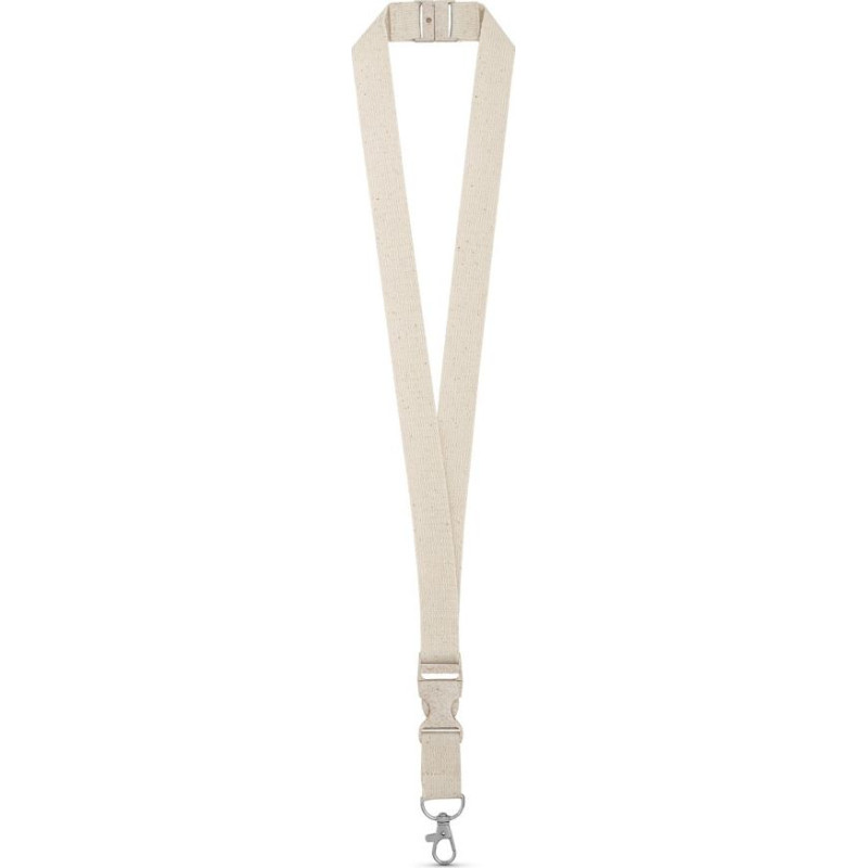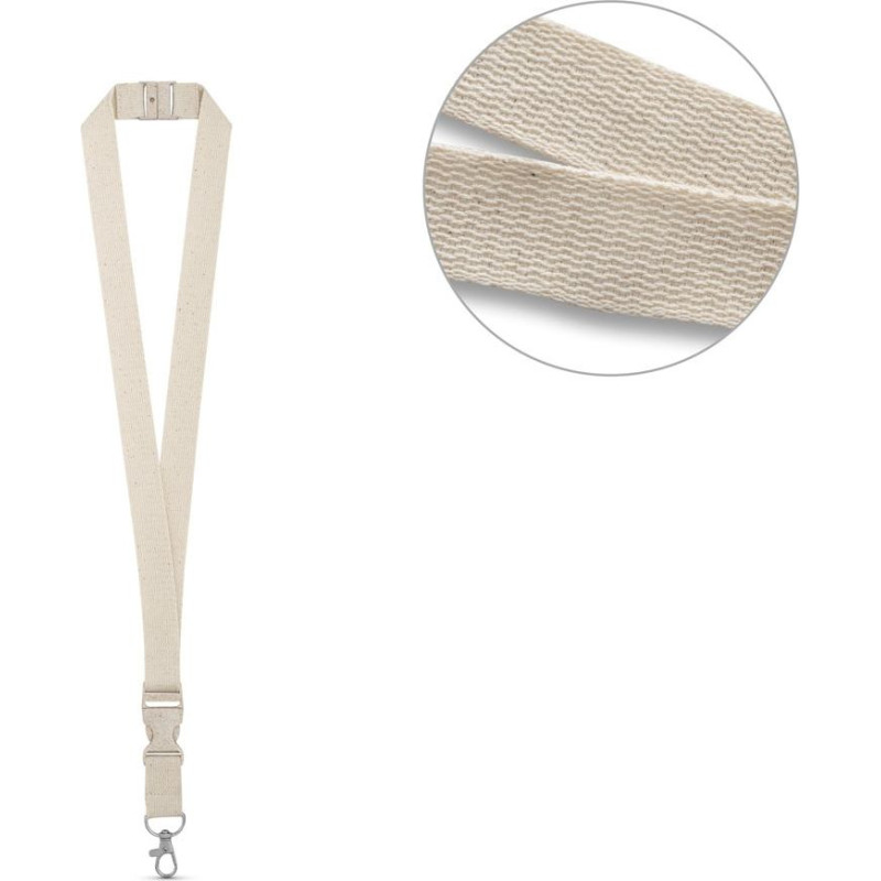 100% cotton lanyard with metal carabiner. Removable buckle and safety lock in wheat straw. 20 x 510 mm
