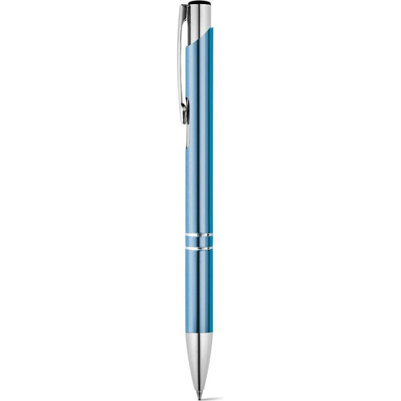 Aluminium ball pen with clip and metallic finish, available in various colours. Black ink. ø10 x 137 mm