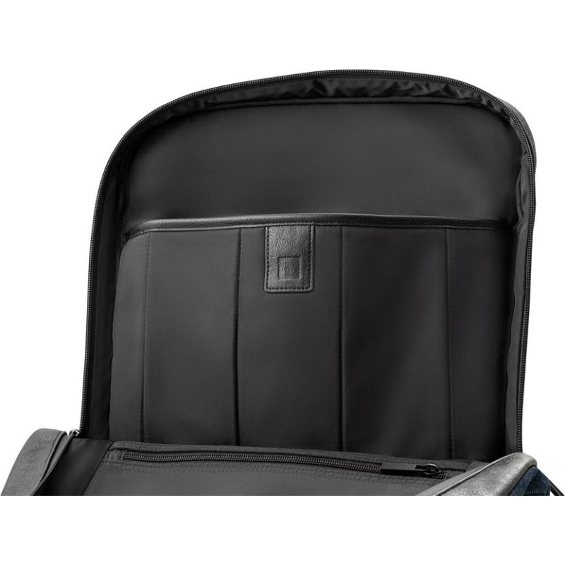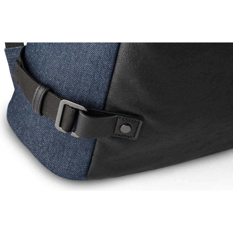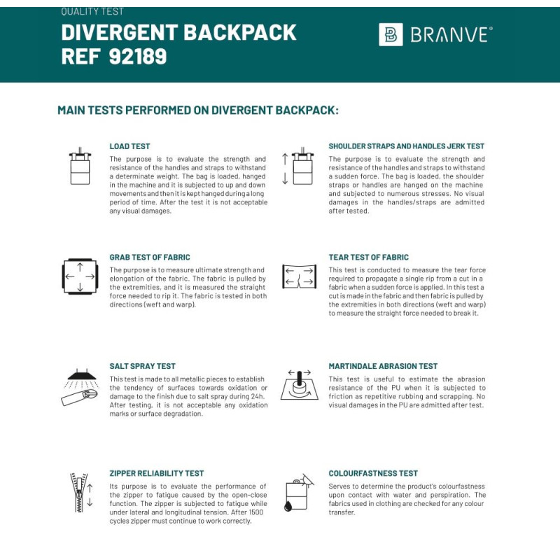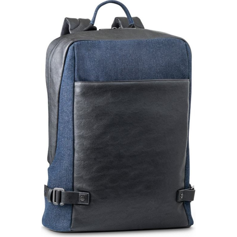 Backpack with a mix of contemporary materials, contrasting denim with the elegance and irregular texture of PU. Its high quality zip with rubberised finish, together with the PU top, gives the backpack some water resistance. Interior PU compartment, consisting of a padded pocket for a laptop up to 15'6" and two zip pockets. The aesthetically pleasing adjustable side straps can be used to support items such as hanging a jacket or as a support for an earphone cord. It includes a trolley carrying strap and the back and handle are padded for greater comfort. Capacity up to 17 litres. Supplied in a non-woven bag. Product includes Quality Test Report. Backpack: 320 x 430 x 125 mm | Non-woven bag: 500 x 550 x 130 mm