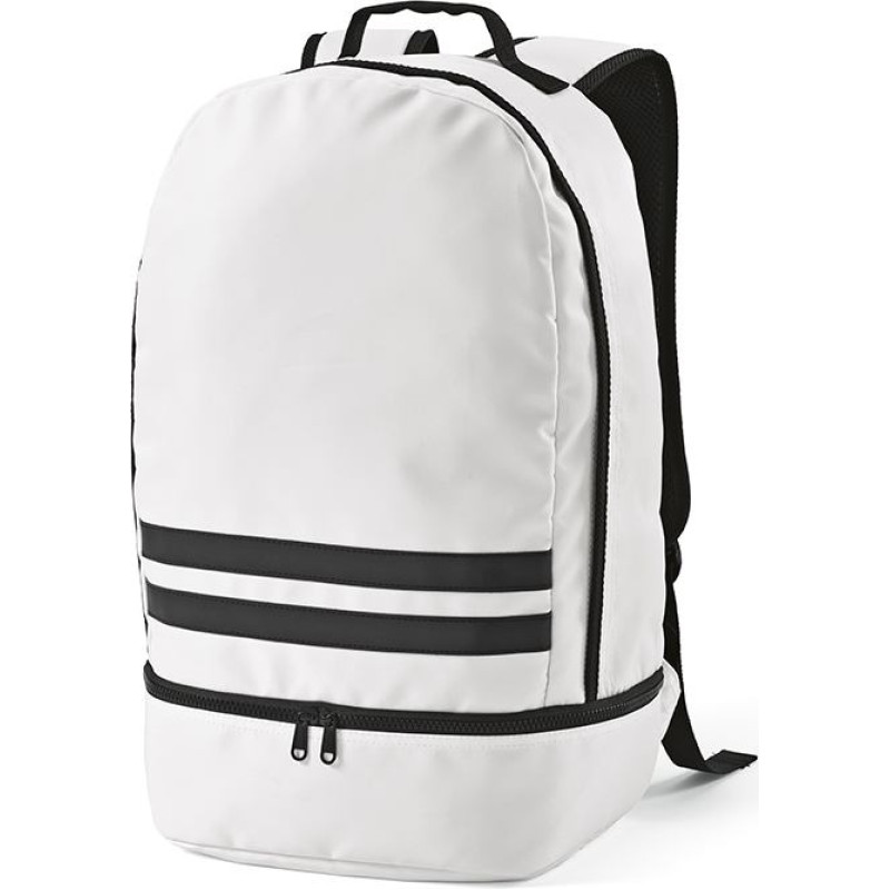 Buenos Aires Backpack made from rPET, is a 25L backpack designed with functionality in mind. This is a lightweight bag but it is not light on features. This bag features back padding, a reinforced top handle and two black reflective front stripes for safety. On the bottom, there is a separate pocket ideal for shoes. Available in 8 colours.