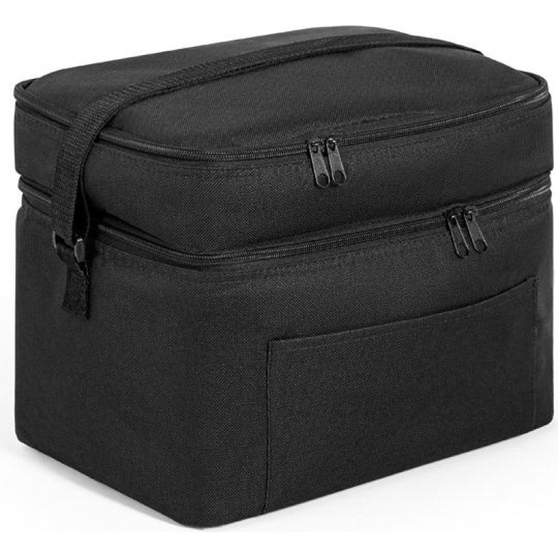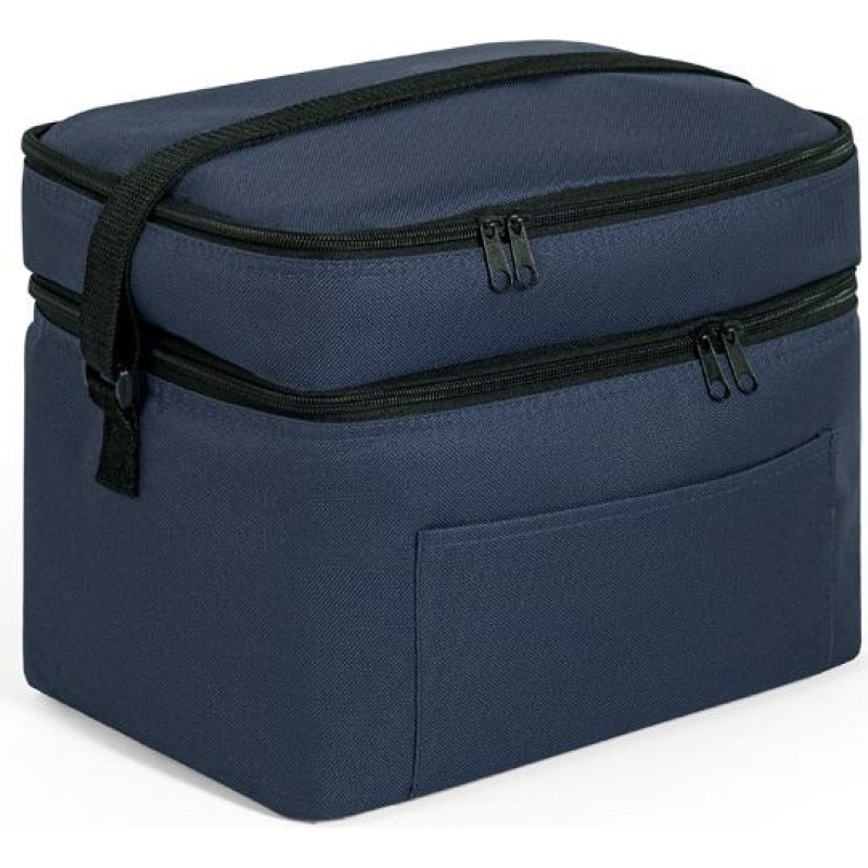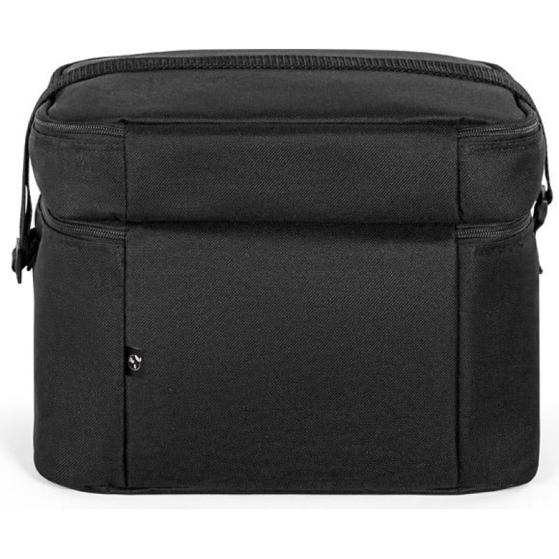 Thermal bag in 600D, recycled polyester, with adjustable webbing strap. The bag has a design that offers excellent capacity, making it perfect for everyday use as well as family picnics. Composed of 2 main compartments and a front pocket. The PEVA-lined interior guarantees good thermal insulation, allowing you to keep cool for longer. 14 litre capacity. 300 x 250 x 200 mm