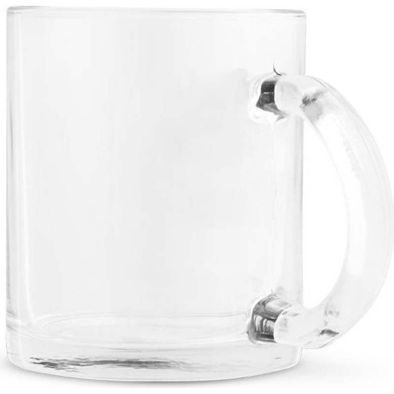 Glass mug suitable for sublimation.Capacity up to 350ml. Supplied in a gift box. Ø80 x 95 mm