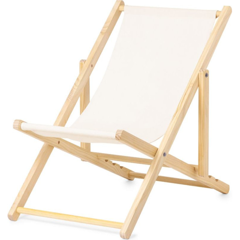 Folding chair with wooden structure. Backrest and seat in resistant, soft and heavyweight canvas in natural finish. Reclining and convertible into lounger, with 4 adjustable positions.