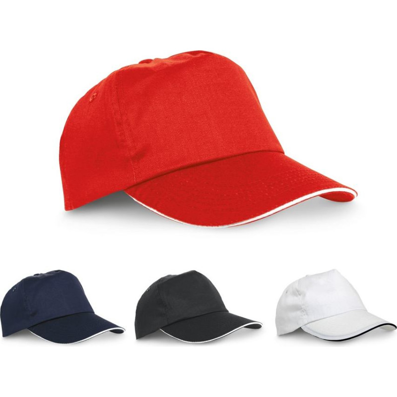 100% polyester sandwich cap with ventilation holes and adjustable self-adhesive hook and loop fastener. Size: 580 mm