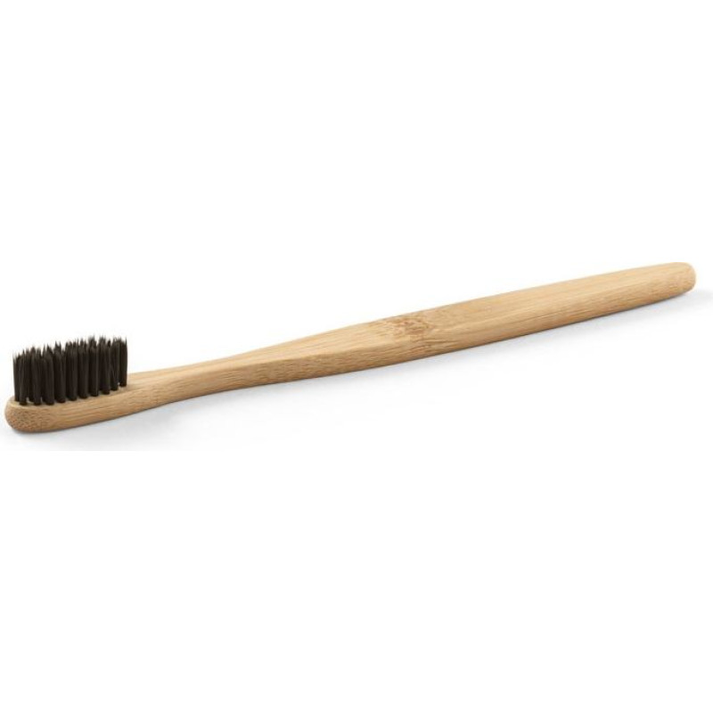 Toothbrush with bamboo body and Nylon bristles. Supplied in kraft paper gift box. As the product is made from natural materials, the colour and the printing result may vary between products. Toothbrush: 175 x 14 x 5 mm | Box: 190 x 30 x 15 mm