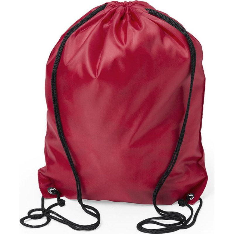 Drawstring backpack for children in soft polyester 210D and in bright tones. With black self closing strings and corners with metal reinforcement eyelets.