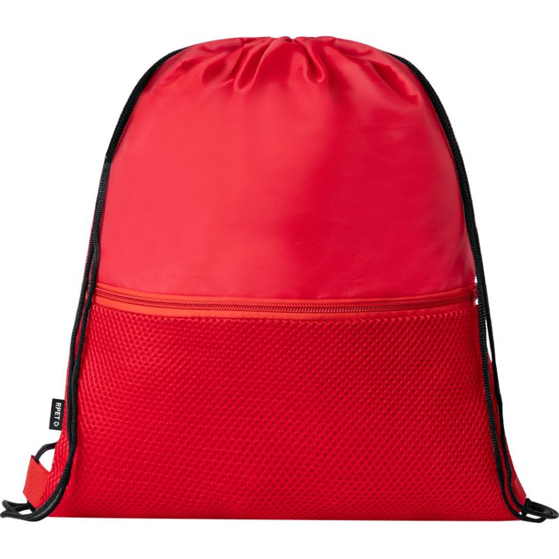 Drawstring backpack made of soft 210D RPET polyester. Self-closing strings in black color and a front mesh pocket with matching zip closure. RPET side label and available in a variety of colours (white color specially made for sublimation printing).