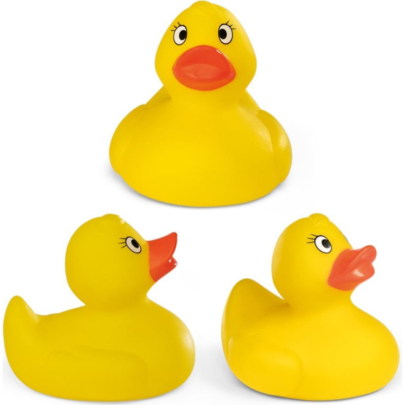Yellow PVC rubber duck, ideal for playing in the water. 70 x 72 x 80 mm