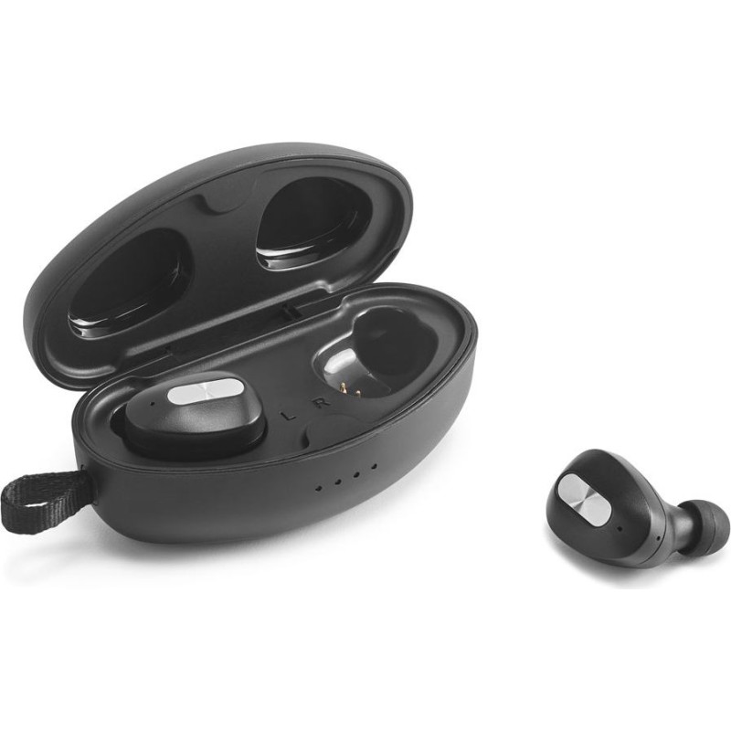 Wireless earphones with a microphone and a discreet design so you can enjoy listening to your favorite music or, if necessary, take an important call. With an autonomy of approximately 3 hours of playback and up to 300 hours of standby time.Material: ABSWireless transmission: BT V5'0Capacity: 500 mAhAutonomy: 3hFeatures: hands-free calling and playlist control from mobile deviceDelivery: gift box 31 x 78 x 38 mm | Charging box: 79 x 40 x 32 mm | Box: 128 x 110 x 58 mm