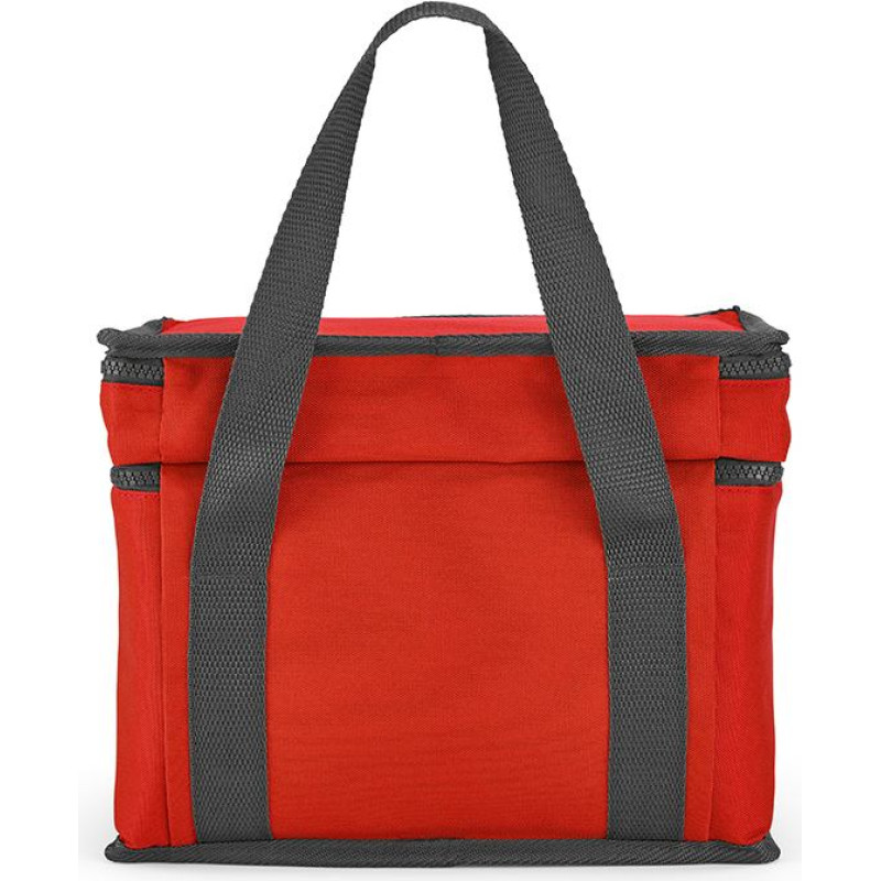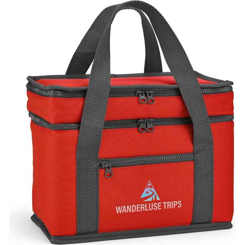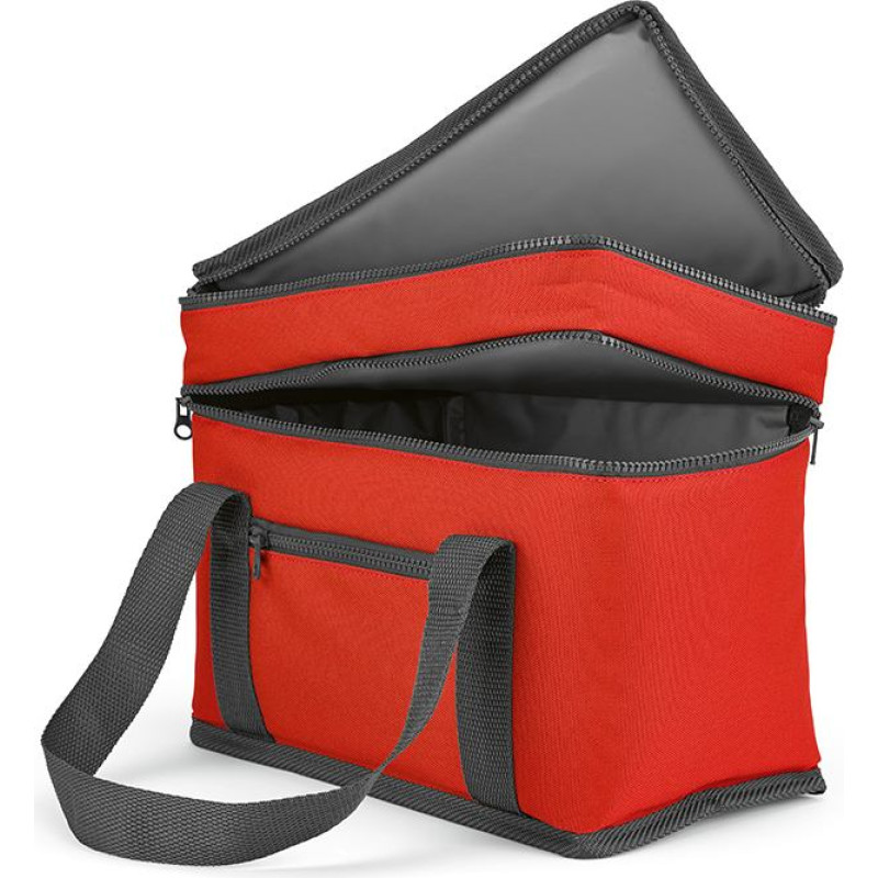 Florence L 10L cooler: crafted from 600D rPET, it features two compartments, a frontal pocket and advanced thermo injection zippers for optimal cooling. Elevate your outdoor experiences with style and eco-consciousness. Suitable for 8 cans.