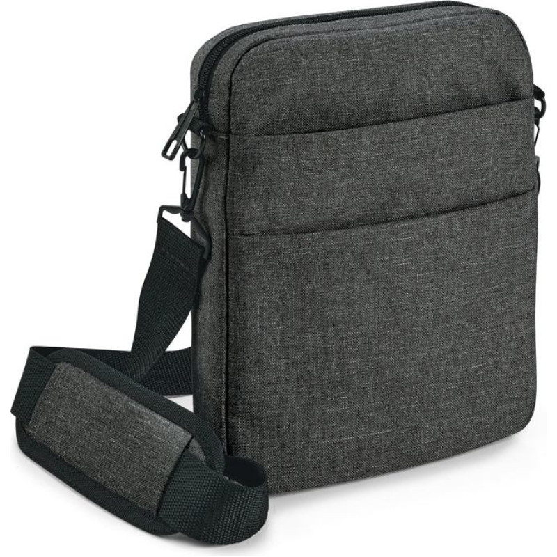 9'7" Tablet shoulder bag in high-density 600D with padded compartment for tablet protection. The interior is lined and padded. The bag has a front pocket, adjustable shoulder strap with padded reinforcement for comfort. 220 x 270 x 45 mm