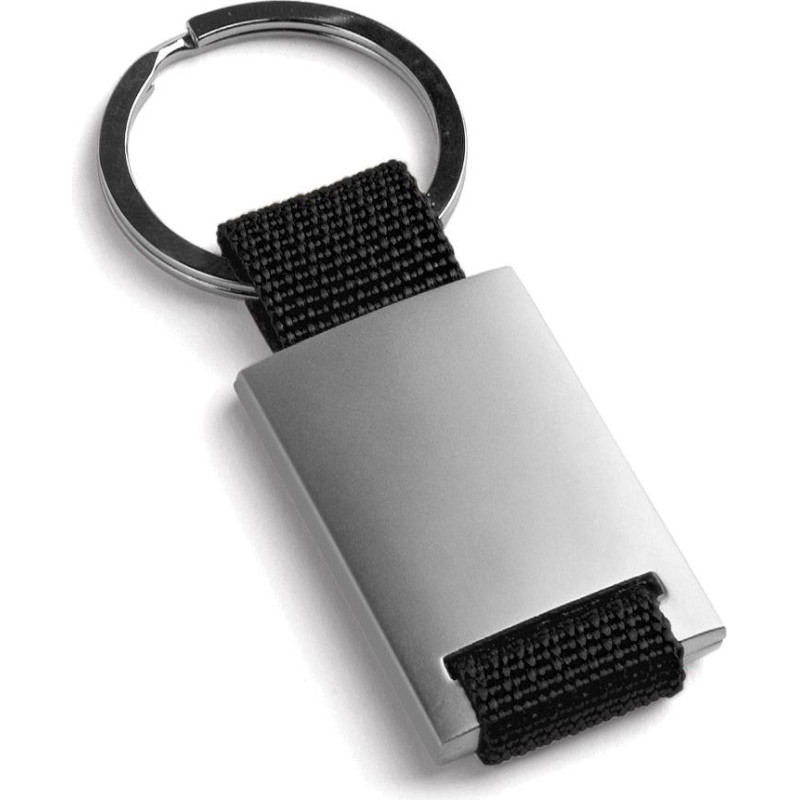 Metal and webbing keyring. Available in a wide range of colours. 28 x 60 x 6 mm