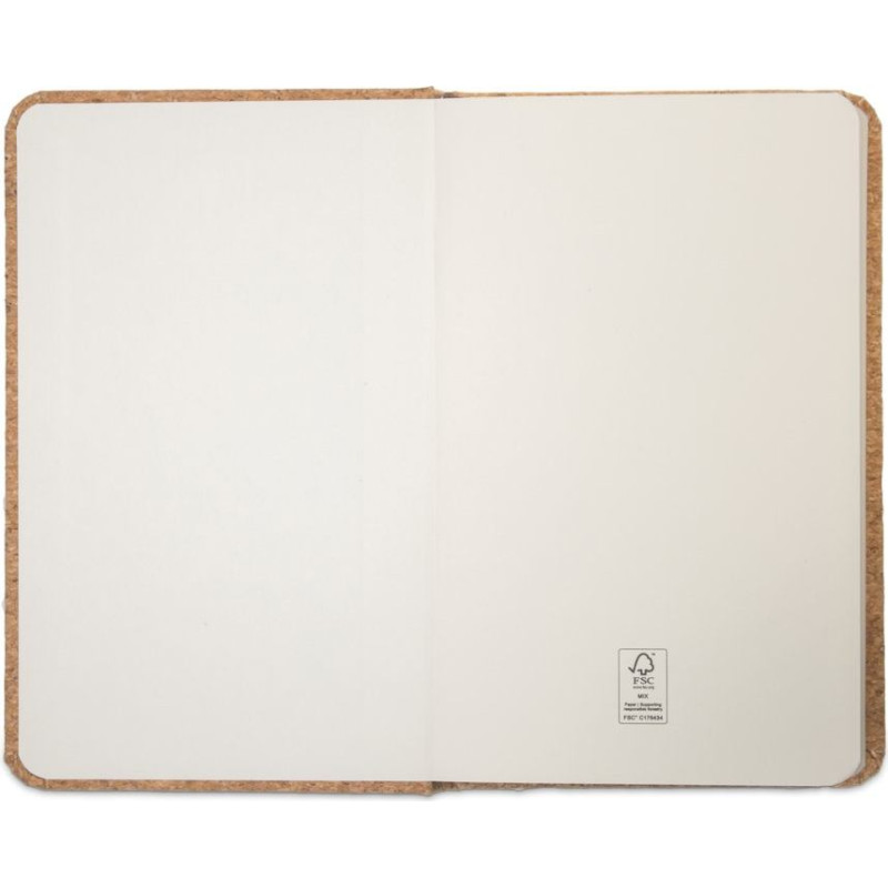 Pocket cork notebook with 160 plain pages (70 g/m²) in FSC™ certified material and other controlled materials, separator strip and elastic fastener. As the product is made from natural materials, the colour and the printing result may vary between products. 90 x 142 mm