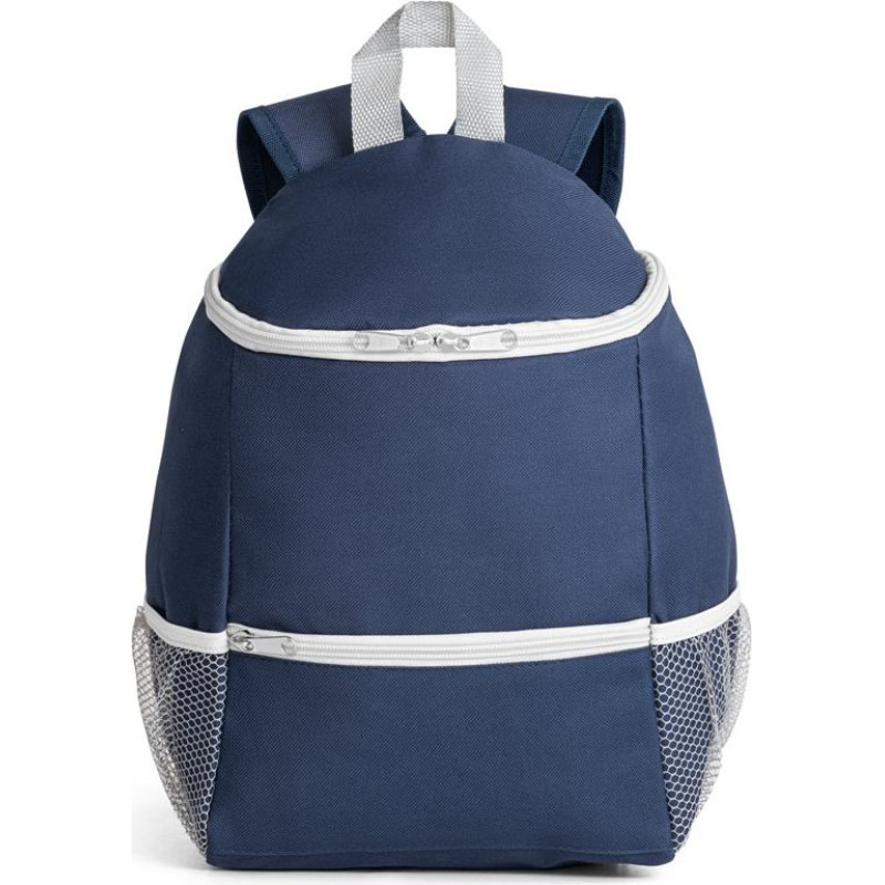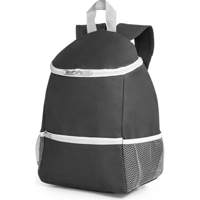 600D cooler backpack with a capacity of up to 9 L. Includes a zipped front pocket and two side mesh pockets. 280 x 340 x 140 mm