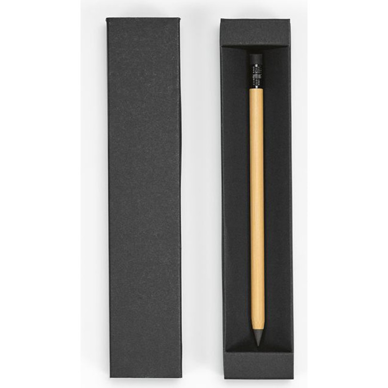 Kerouac inkless pen with Bamboo barrel is an ode to eco-friendliness. It's an endless pen featuring an eraser and elegantly encased in a recycled paper black gift box.