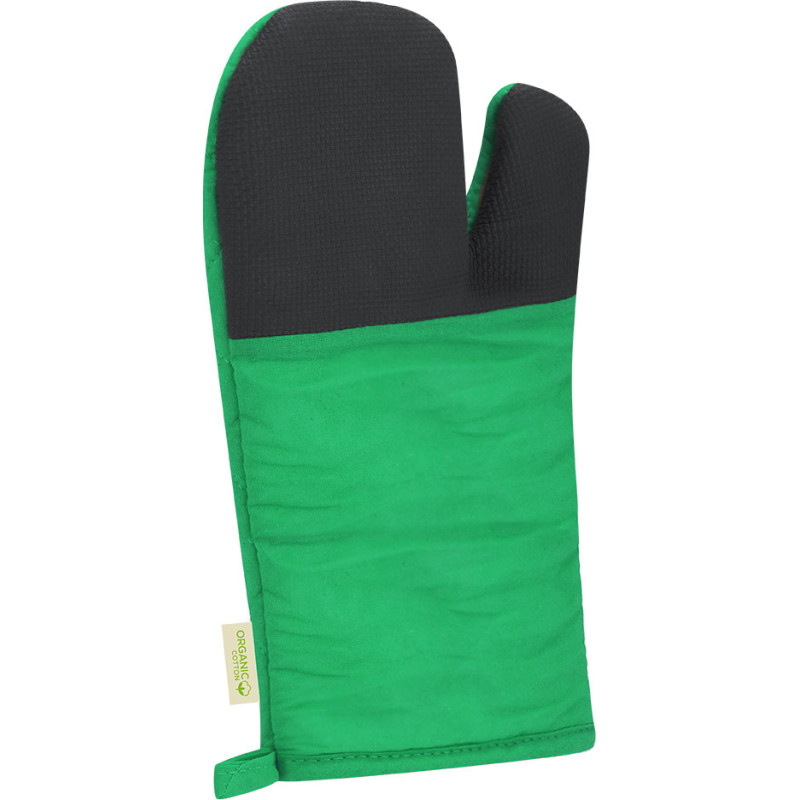 Organic cotton glove with rubber coating on the grip area for better protection against high temperatures. Includes organic cotton designation.