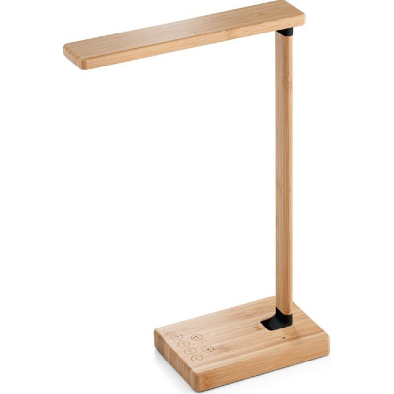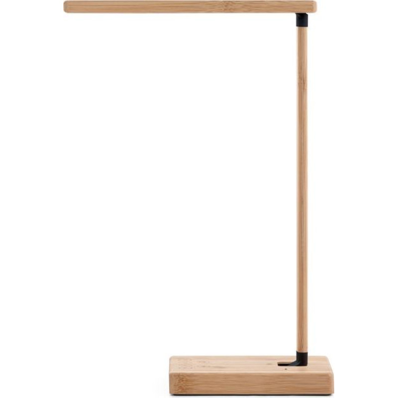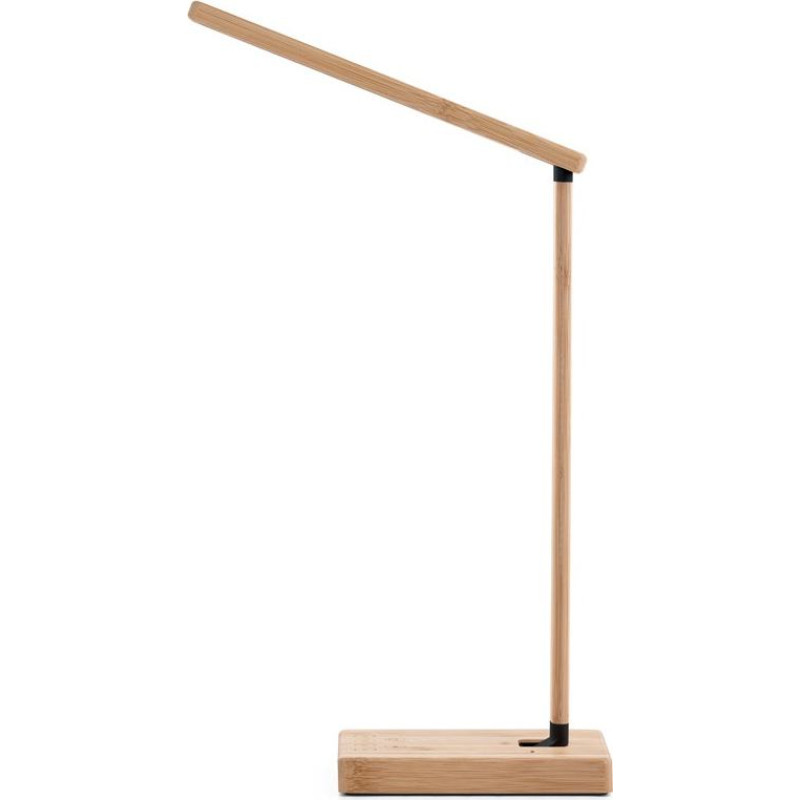 Foldable bamboo desk lamp with 16 white and 9 yellow LEDs and super-fast wireless charger. Allows you to charge other devices at the same time. A complete and versatile lamp that combines functionality with your needs.Material: BambooWireless charging power: 15 WOutput: USB-AIncludes: USB-C charging cableDelivery: kraft paper gift box 432 x 110 x 37 mm
