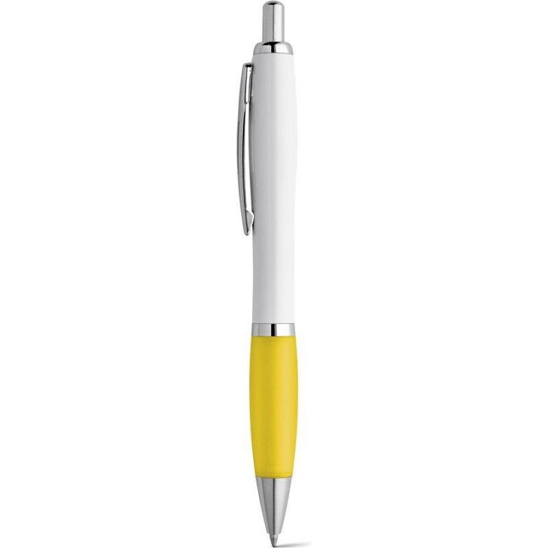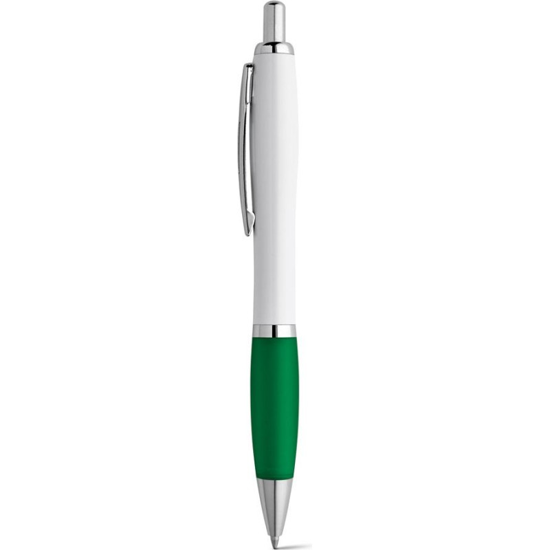 ABS ball pen with clip and metal trim. Coloured non-slip grip and white body. Blue ink. ø12 x 140 mm