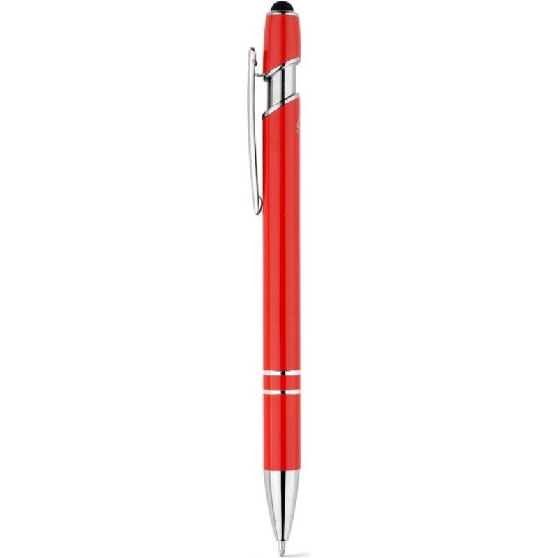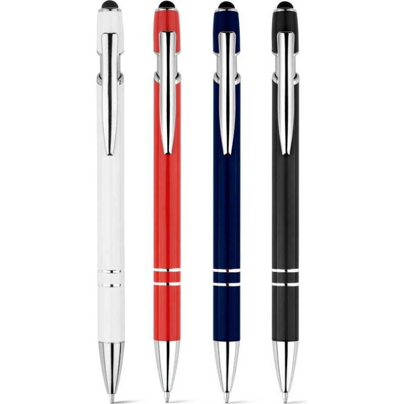 Ballpoint pen in recycled aluminium (100% rAL), with touch tip at the top of the pen. Blue ink. ø10 x 143 mm