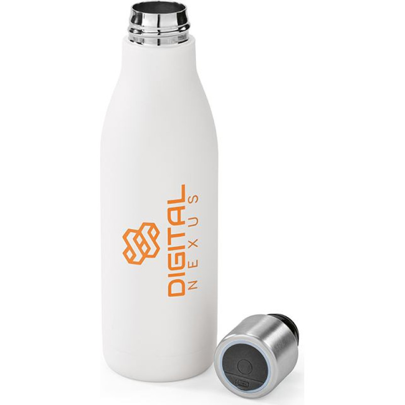 The Parana bottle is made of recycled stainless steel and has a total capacity of 550 ml (520 ml liquid). It features a UV-C self-sterilization function, with a wavelength of 270–280 nm, that eliminates up to 99.9% of bacterias inside the bottle. Cleaning can be done in Regular mode (3 minutes) or Ultra mode (5 minutes). The 400mAh lithium battery recharges in approximately 3 hours via the USB-C port, using the included 50cm black TPE cable. Once charged, the bottle maintains the sterilization function for up to 14 days. With double wall vacuum insulation, it will keep your drink hot for 30 hours and cold for 72 hours. Packed in an premium kraft box.