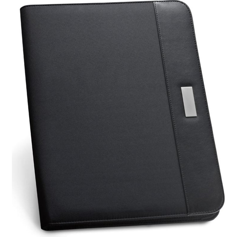PU and microfibre A4 folder, with zip fastening. The folder contains several interior pockets, 40 lined pages pad and a pen holder (pen not included). Plate available for customization. 245 x 325 x 40 mm | Plate: 16 x 45 mm