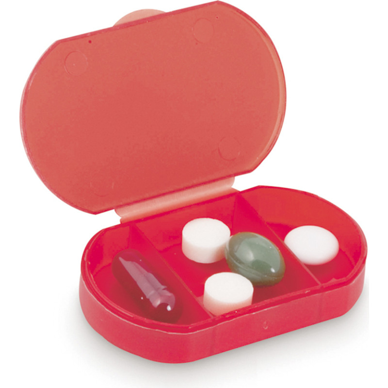 Translucent body pill box in vivid colors. with 3 compartments and safety lock.