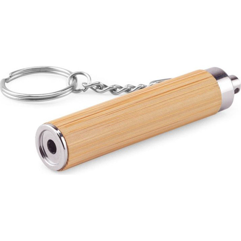 Bamboo and ABS key ring with LED torch. Includes 3 LR41 batteries. Supplied in a kraft paper gift box. ø15 x 75 mm | Case: 79 x 27 x 19 mm