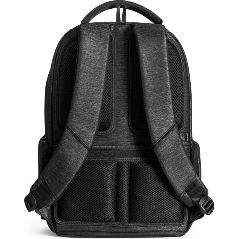 Waterproof laptop backpack, designed to protect your devices in all conditions, especially when travelling on rainy days.Outer material: water-resistant 2-tone recycled nylonInner material: 210D polyesterLaptop pocket: 17"Capacity (L): 20Compartments: 2 padded main compartmentsExterior pockets: 2 front pockets and 2 side pockets with zippersBack panel: padded with extra padded support system, zippered pocket on trolley strapAdditional features: reinforced and padded handle 310 x 470 x 200 mm