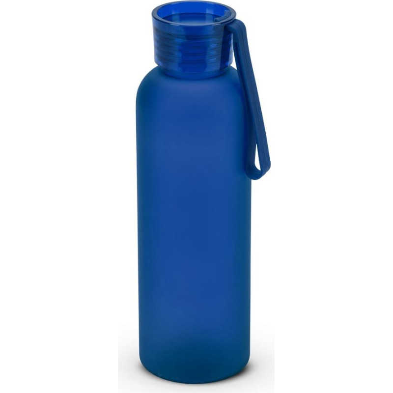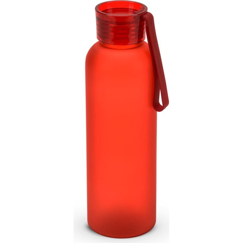 Sports bottle in recycled PET (100% rPET), with a frost finish. Leak-proof PS lid with silicone strap for easy transport. Capacity up to 600 mL. ø66 x 215 mm