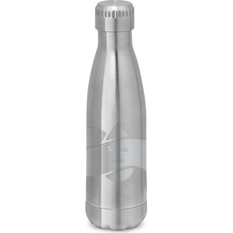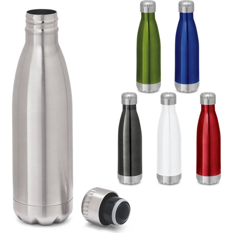 Double wall stainless steel vacuum bottle with screw-on, leak proof lid. Volume-capacity 510 mL. Supplied in a gift box. ø70 x 260 mm