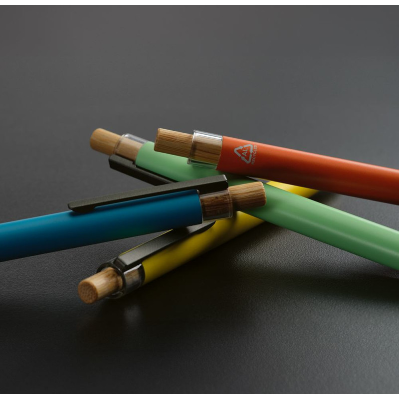 Tolkien Ballpoint pen made from recycled aluminium body. It features a bamboo push button and rPET clip. Enjoy 1km of blue Dokumental® Ink (1.0mm tip). Available in 16 colour options and comes in an earth-friendly natural kraft box.