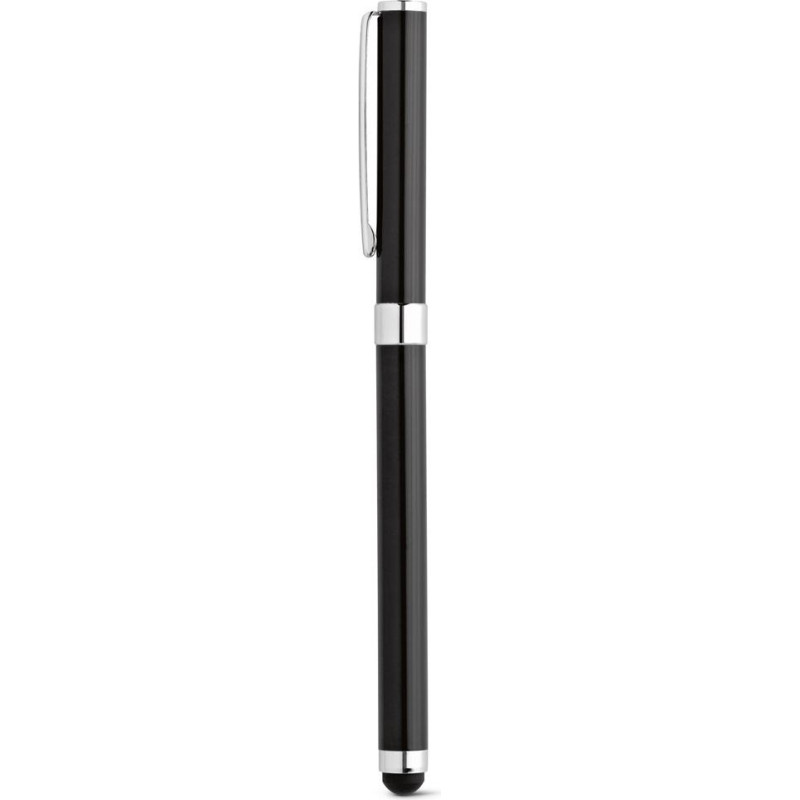 Stainless steel roller ball with shiny body and chrome details. The detail of the touch tip makes this gift sophisticated and adaptable to new technologies. Black ink. Supplied with a disassembled gift box. ø9 x 141 mm | Case: 150 x 15 x 19 mm