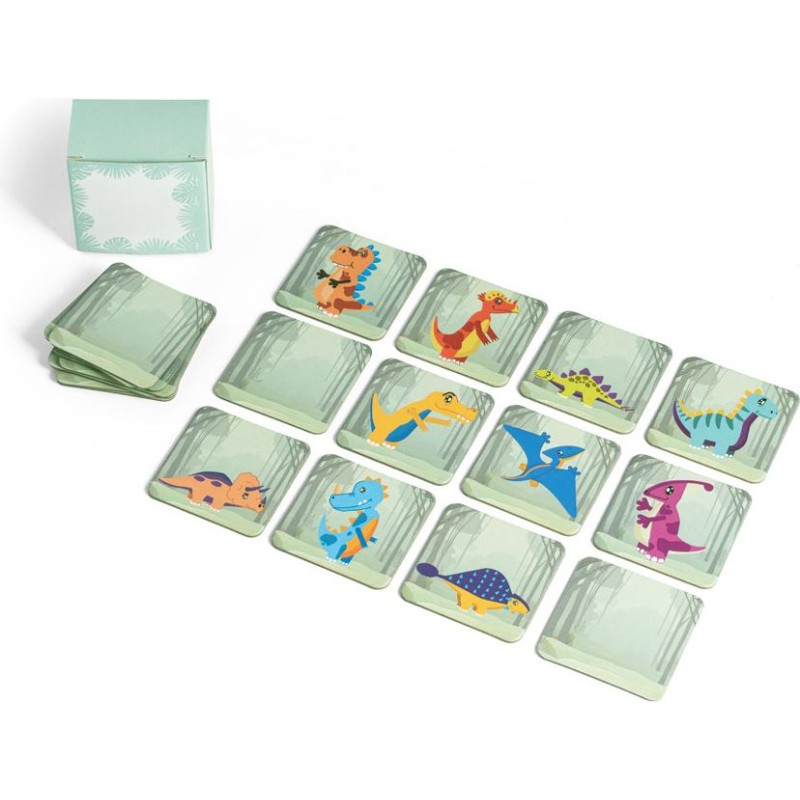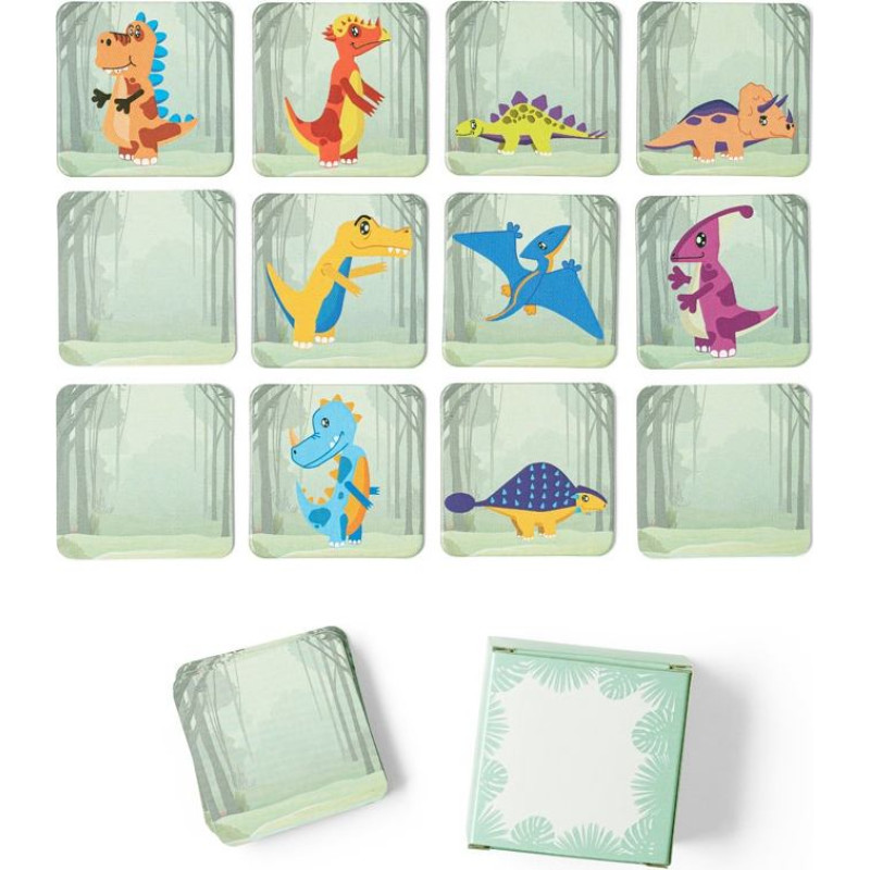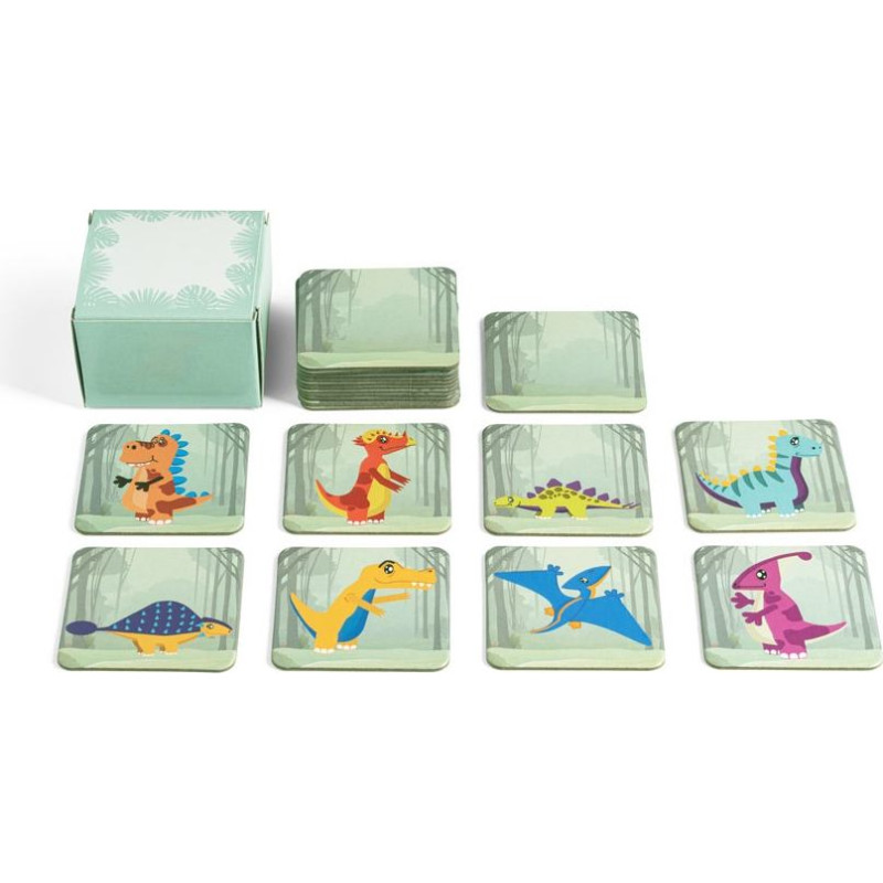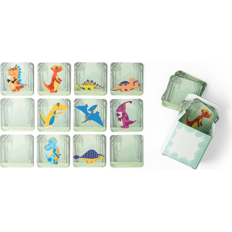 20 piece memory game with dinosaur figures, lightweight and easy to carry. The box provides storage for the game and can be customised. Piece size: 50 x 50 x 1 mm | Box: 56 x 54 x 35 mm