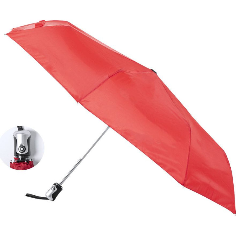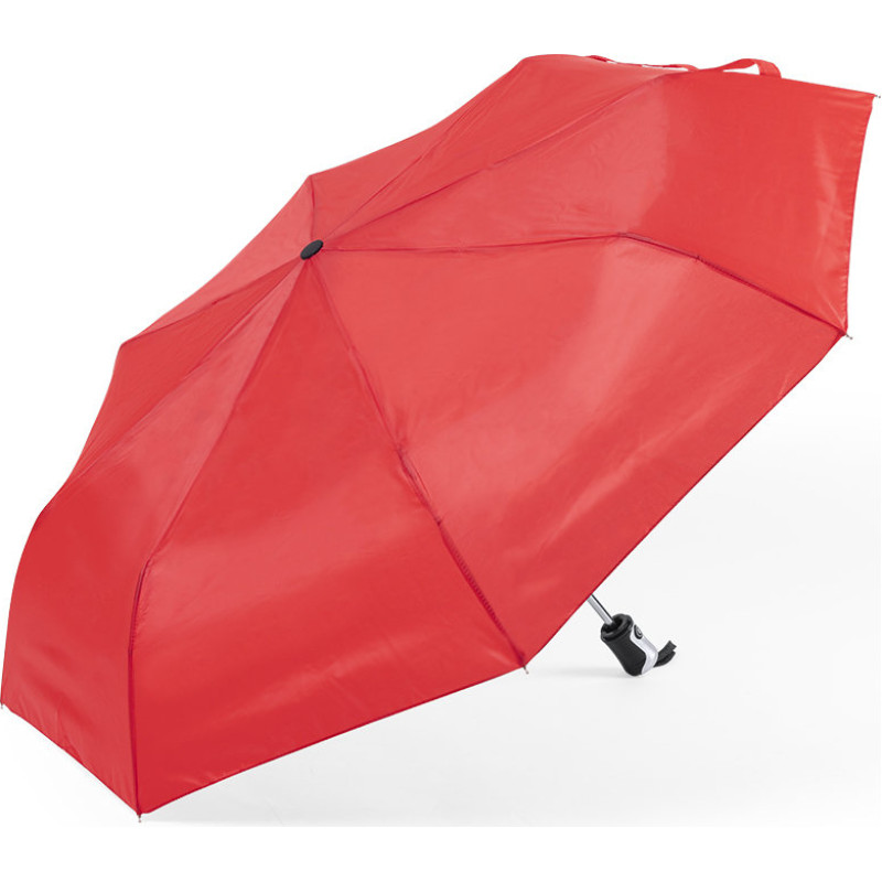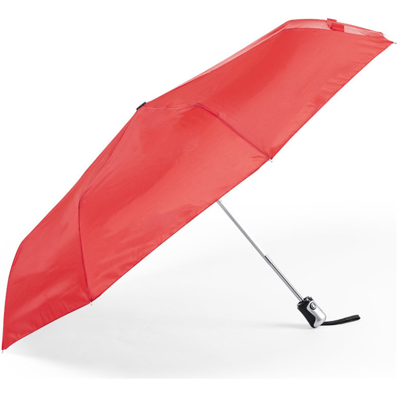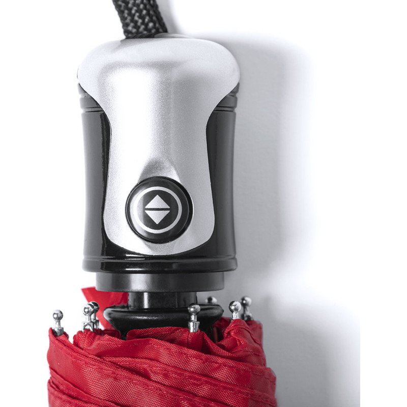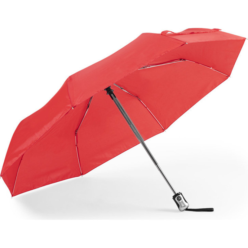 Folding umbrella with 8 panels and 98cm diameter. Fabric in resistant 190T polyester, with automatic open/close mechanism and windproof system. Silver and fibre glass metal shafts. Velcro closure and ergonomic handle with carrying strap. Including case in matching color.