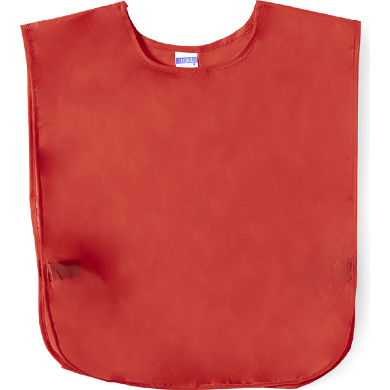 Sporty bib for children in soft and resistant 190T polyester with bright tones and elastic sides. One size fits all.
