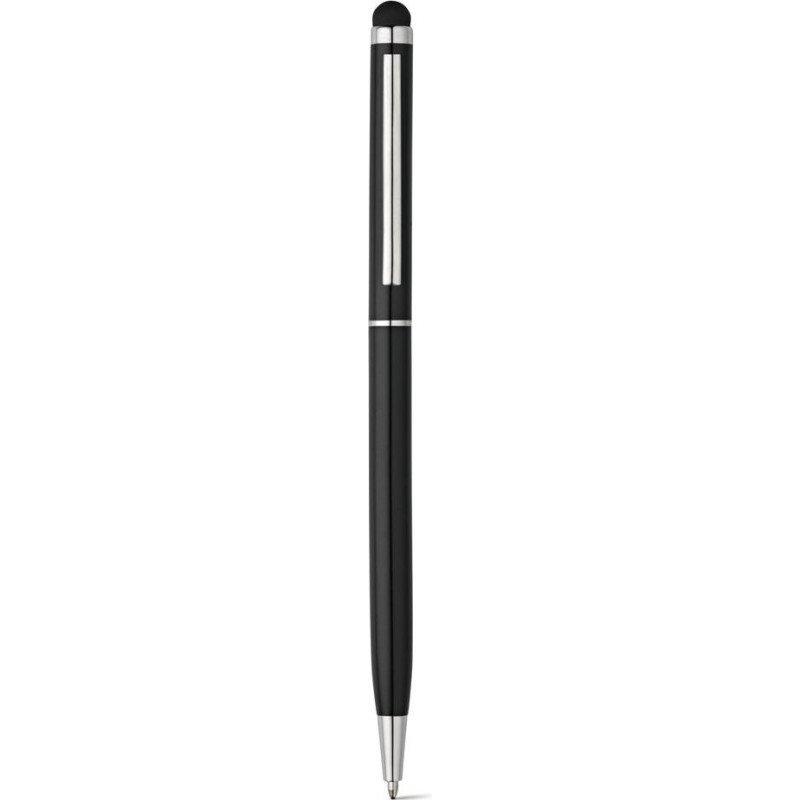 Aluminium ball pen with twist mechanism, clip and touch tip. Black ink. ø8 x 135 mm