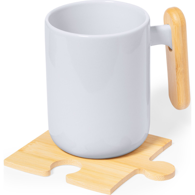 Set of coasters made of bamboo. Consists of 4 pieces designed as a puzzle. Presented individually in a kraft design box.Materials such as bamboo encourage the use of natural raw materials, reducing pollutant emissions. In addition, bamboo comes from a highly resistant and versatile plant, with rapid growth and regeneration, making of it an excellent alternative to traditional wood.