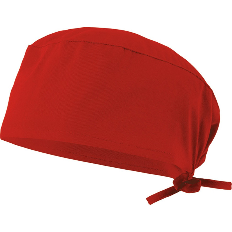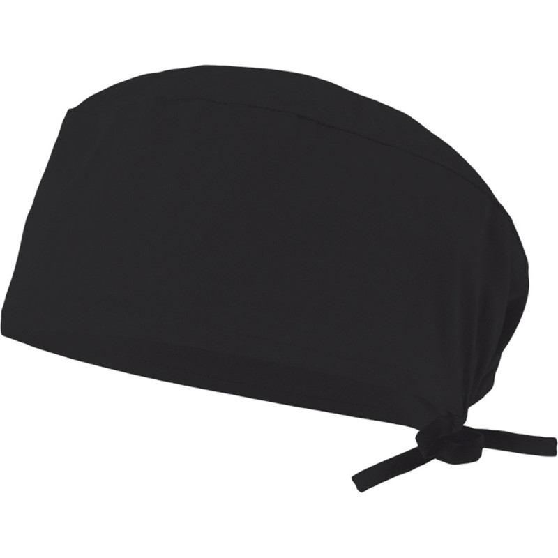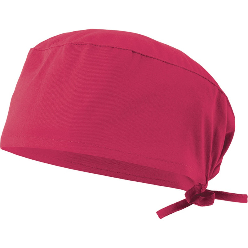 Sanitary twill cap (190g/m²), in cotton (35%) and polyester (65%). With elastic at the back and adjustable with ribbons. One size fits all: ø630 x 100 mm