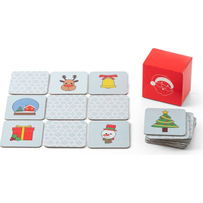20-piece memory game with Christmas figures, light and easy to carry. The box is customized and can be used to save the game. Piece size: 50 x 50 x 1.5 mm | Box: 56 x 54 x 35 mm